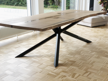 Dinnertable aus Wildeiche 1100x2500x50mm mit Mikado Gestell.