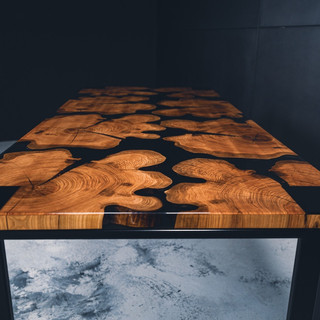 Island Rivertable Esstisch aus Wildkirsche. Die Baumscheiben wurden klar vergossen und die Unterseite Schwarz Lackiert um diesen Effekt zu schaffen. Passend zum Tisch gibt es noch eine mega Sitzgruppe dazu. Wie findet ihr das ?